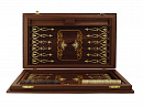 Нарды выполнены по технике "Маркетри", размер 59х66, игровое поле2х55х25, выглядят очень солидно. Материал махагон.