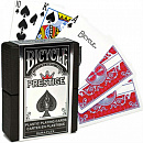 Bicycle Prestige - карты Bicycle с новым дизайном. Они сделаны из пластика, это позволяет пользоваться ими очень долго. Они идеально подойдут для любителей игры в покер, которые оценят их долговечность. Карты поставляются в специальном подарочном чехле.